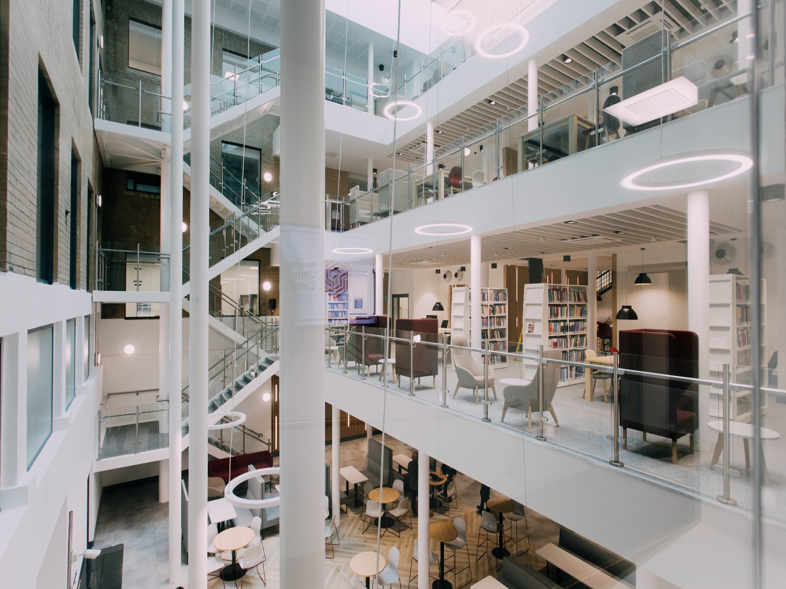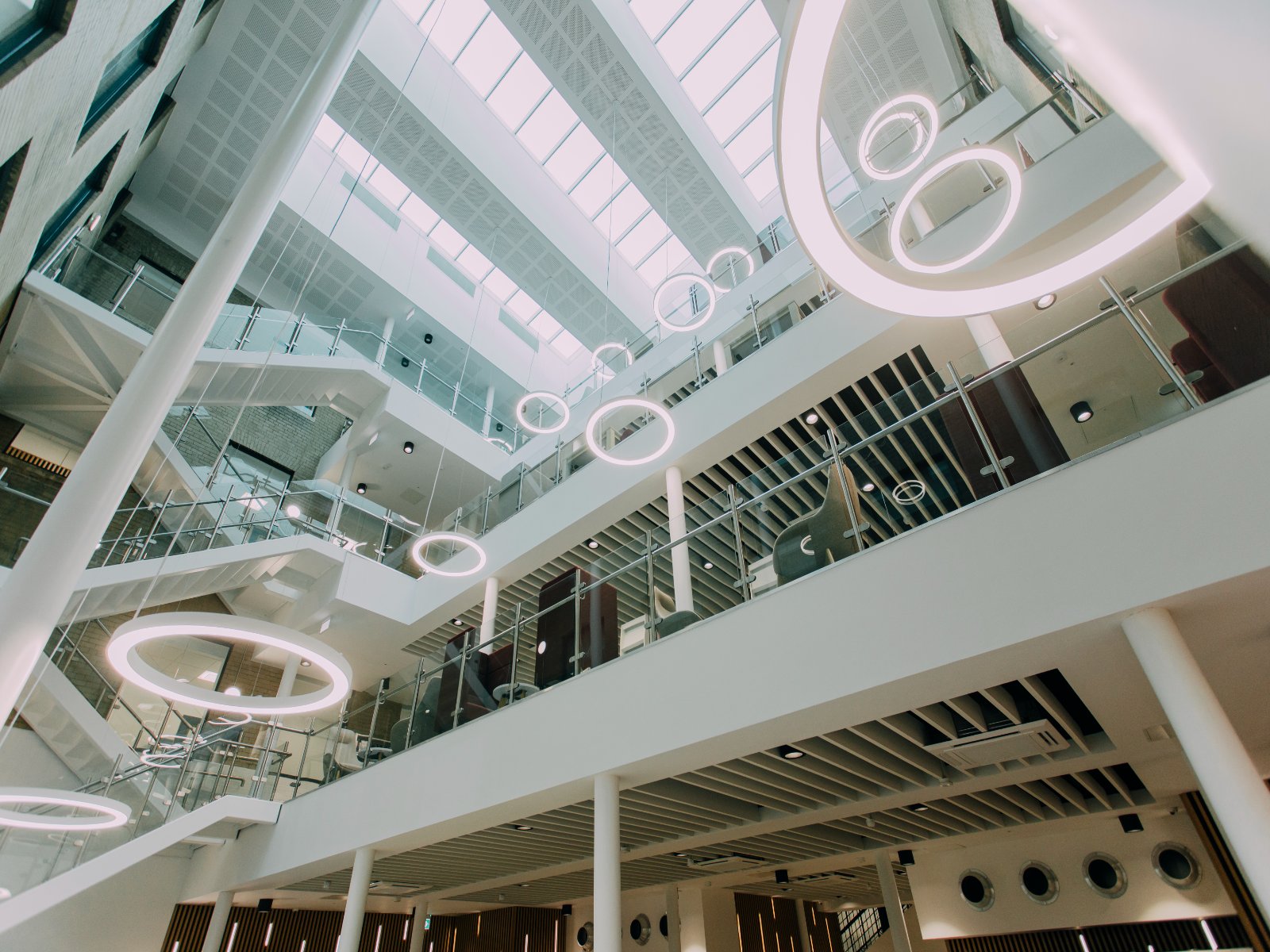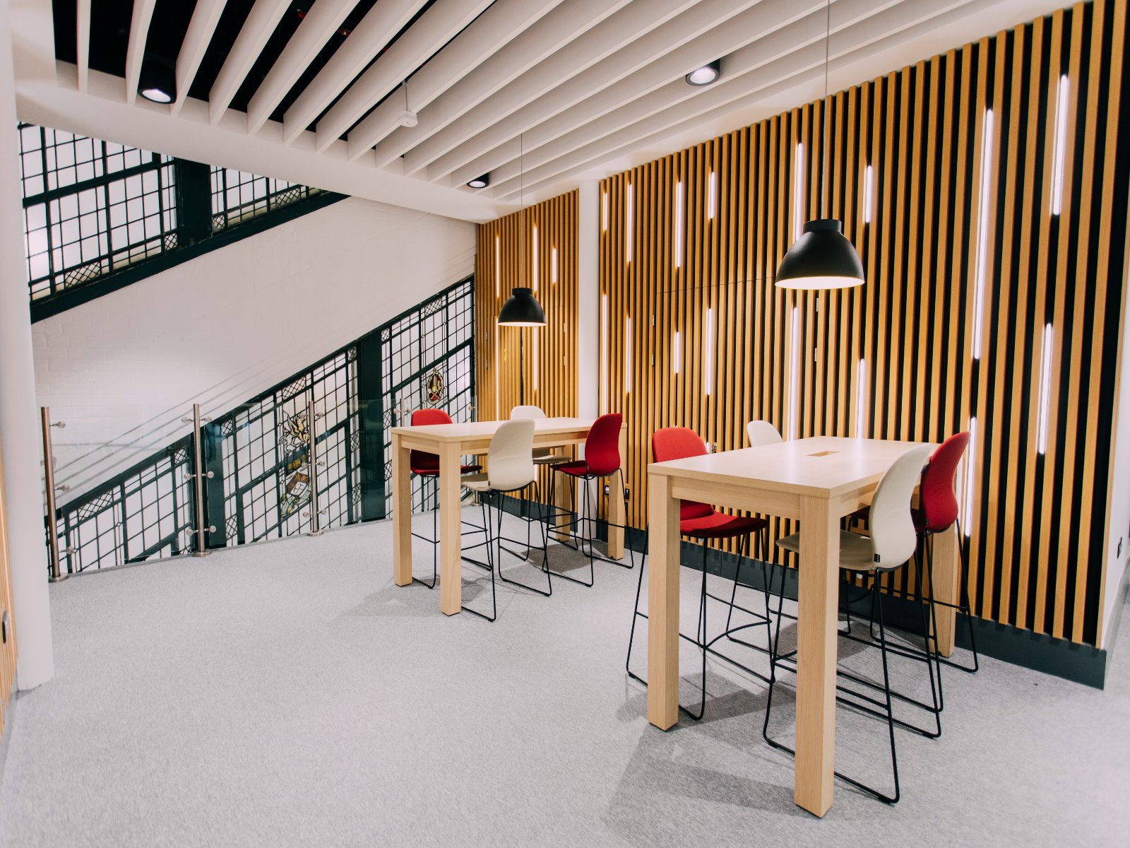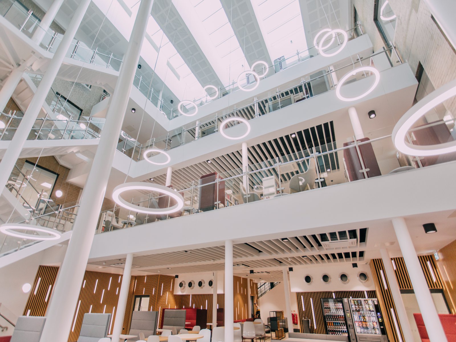 Our team played a key role in delivering high-performance learning environments through the expert installation of suspended ceilings and acoustic baffles, supplied by Ecophon. These modern, functional spaces are designed to enhance both aesthetics and acoustics—supporting students and staff alike.
