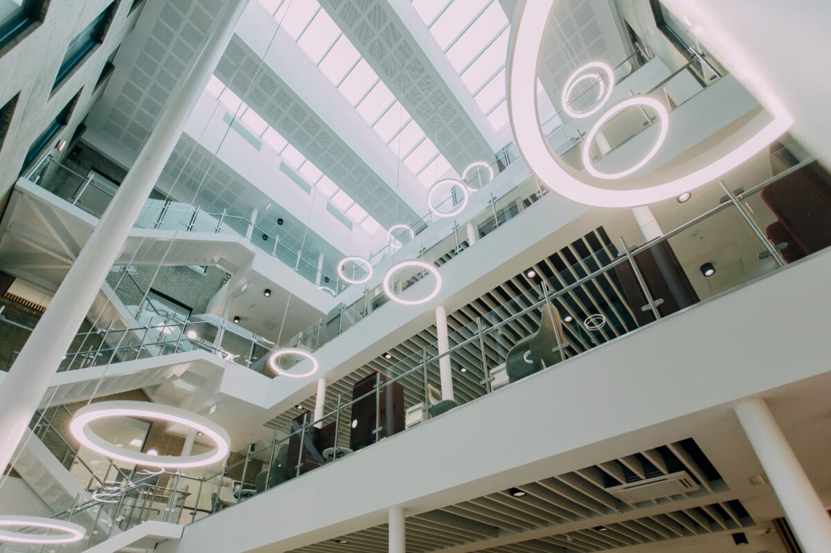 Our team played a key role in delivering high-performance learning environments through the expert installation of suspended ceilings and acoustic baffles, supplied by Ecophon. These modern, functional spaces are designed to enhance both aesthetics and acoustics—supporting students and staff alike.